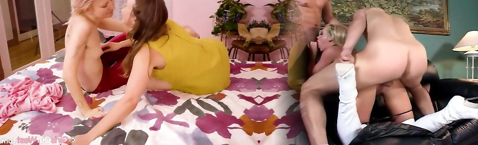 Milf slut Robbye Bentley and voluptuous stunner Nella Jay exploit the man meat of Billy Slide