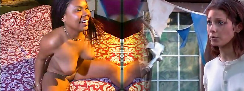 Huge-titted ebony tramps playing with their soles and poons