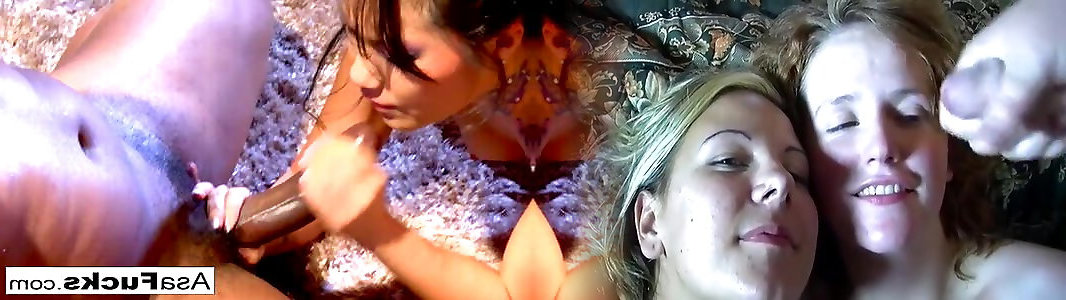 Babes fellate meatpipe and gets creamed after railing and deep-throating off black beefstick