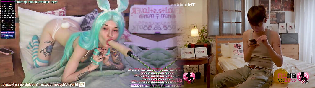Cute bunnygirl Karneli Bandi fuck her throat and pussy with fuck machine