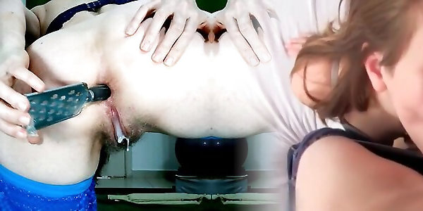 Horny pervert puts ball in his cunt and almost can&039;t get him out
