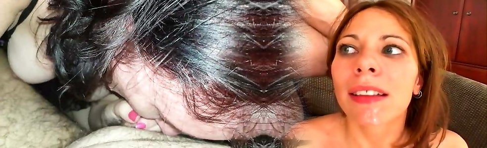 Cuckold sucks two rods for husband and gets dual facial cumshot