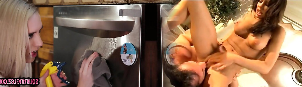 Latina tart sprays while man licks her