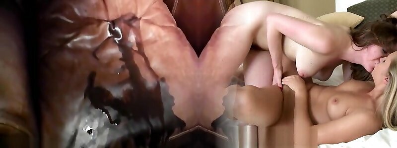 Two dirty bitches squirt while getting hard anal and pussy fuck from a massive man