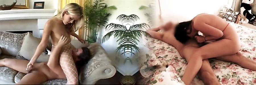 Blondie dolls in dark-hued nylon masterbating