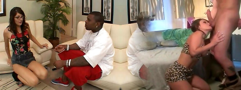 Uber-cute cupcakes dark-hued hoe deep-throats and plumbs a black manstick on sofa