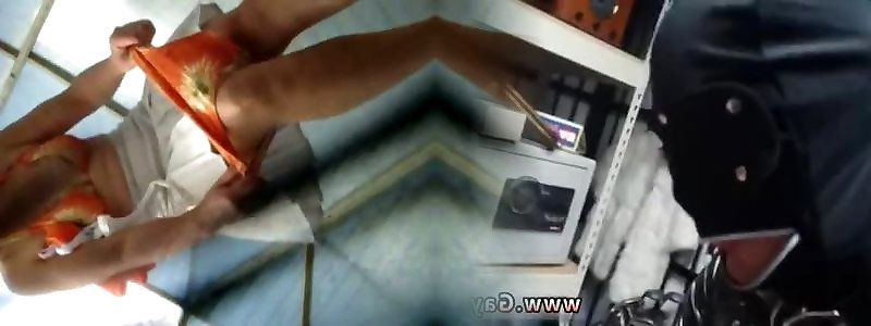 Switching room fem wiggles bumpers as wearing g-string
