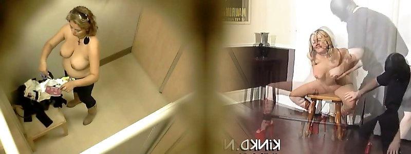 Unexperienced doll in thong on the switching room spy cam