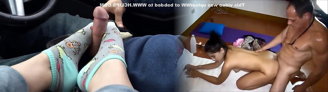 awesome toejob in car with bbw with tiny and popshot on socked soles