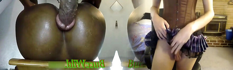 Ravaging her lesbo anal canal with a rotating dildo that stimulates the caboose as well