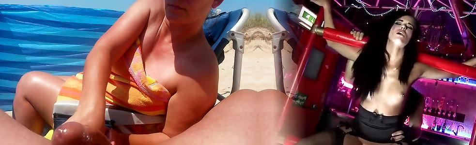 Hand-job on the beach with immense money-shot by sizzling milf