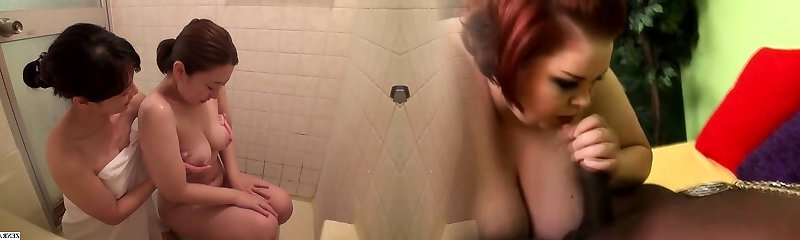 Japanese Milf visits busty cheating wife to help her shower