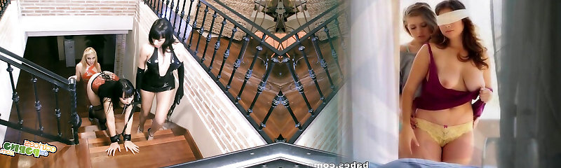 Redhaired teen Sheena Rose in rough lesbian restrain bondage threeway