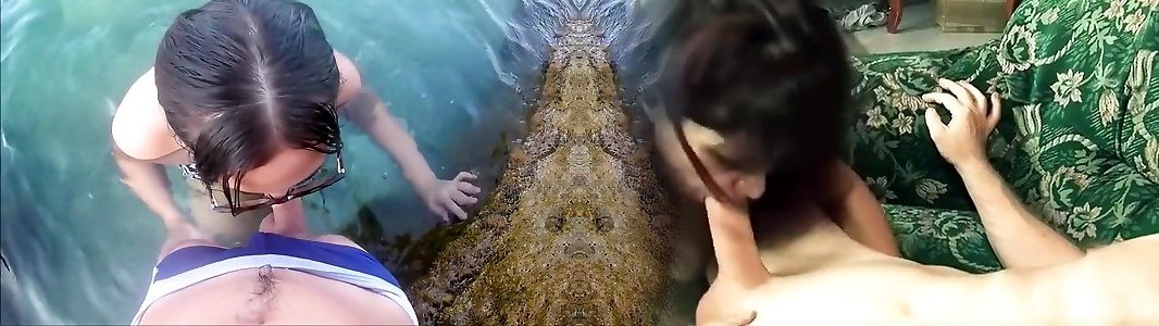 pubblico piacere orale mentre si nuota nel fiume