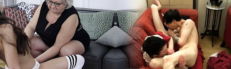 Big granny fucks mature mother and youthful chick
