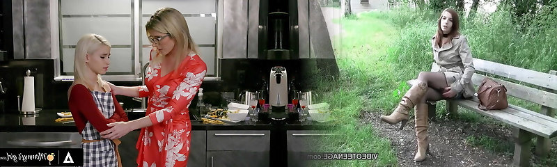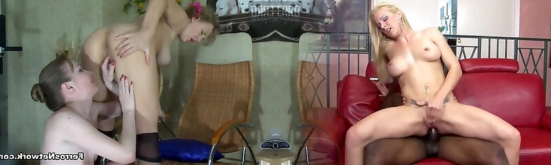 Lesbian pussy lick with platinum-blonde MILF and sweet teen doll