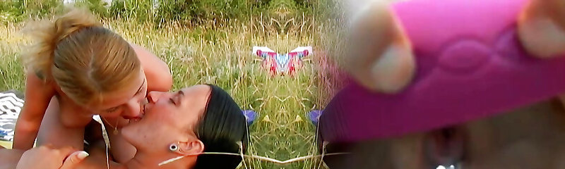 Girl/girl outdoor three-way - I hope we can both suck you off