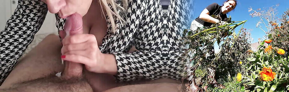 Busty wife gives me blowjob, huge cumshot on tits