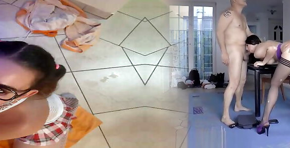 Tasha doing laundry guzzling pee and swallowing cum