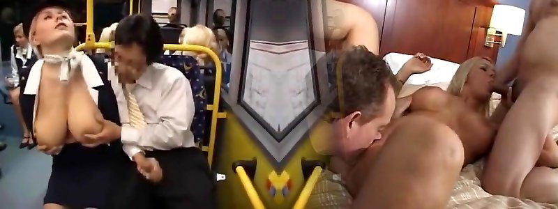 Flight Attendant makes handjobs on a bus