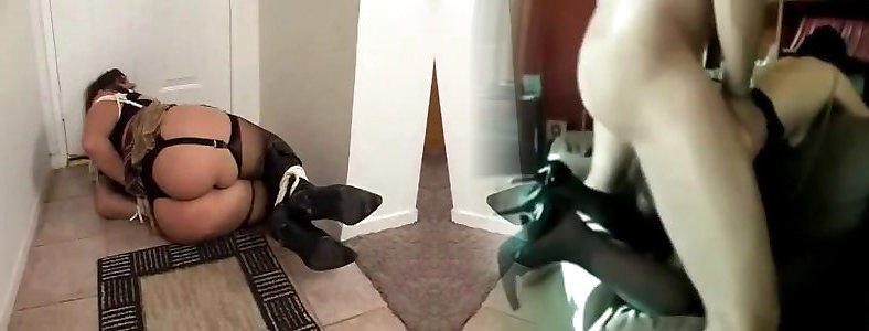 trussed and ball-gagged servant deep-throats man rod.