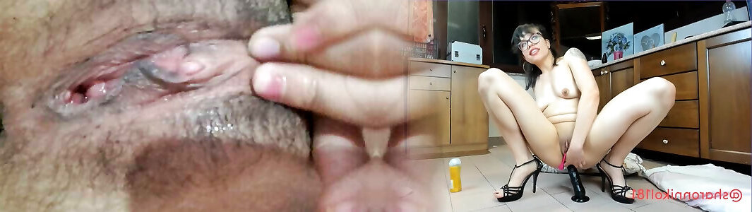 8 months pregnant woman with big clit getting wet with yogurt