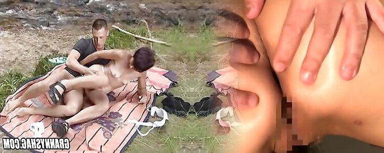 Fur Covered Granny gets porked outdoors - JustHaveSex.com