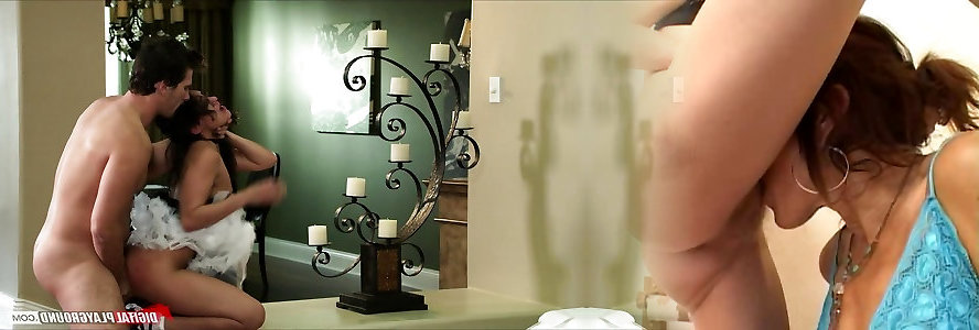 Stepmom Helps in masturbate, While stepsister saw everything behind the Door