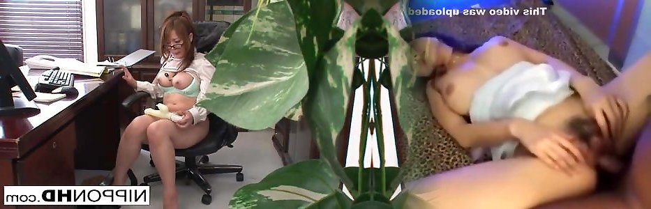 Japanese office tart gets her furry puss toyed and romped