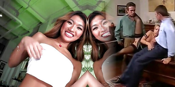 Torrid little Asian doll gets a cum crammed gang-fuck