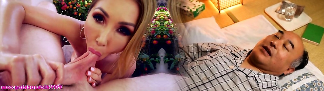 Stunning asian honey inhaling in point of view