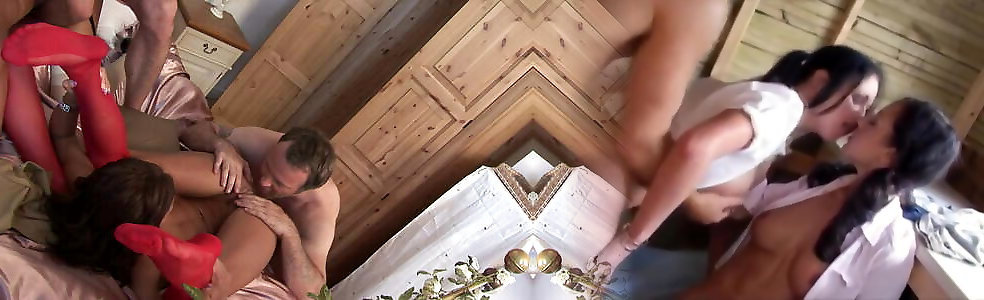 Group gang bang injected unprotected into all extinguishers