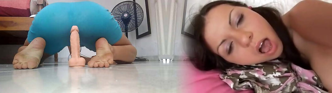 Lovely bony female ravaging a immense fake penis, cumming and slurping it