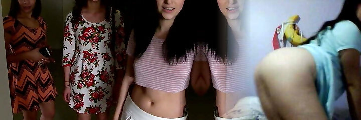 Amateur brunette girl gets undressed and enjoys having lesbian orgy