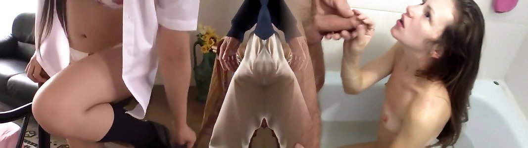 Trio Chinese coeds invite studs for gonzo group orgy party