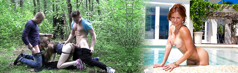 Ginger in outdoor sex vid displays ginger in a super-steamy 3 way porno