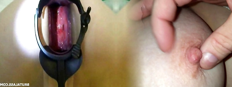 Culo brutally gaped by hefty ass-plug and dildo