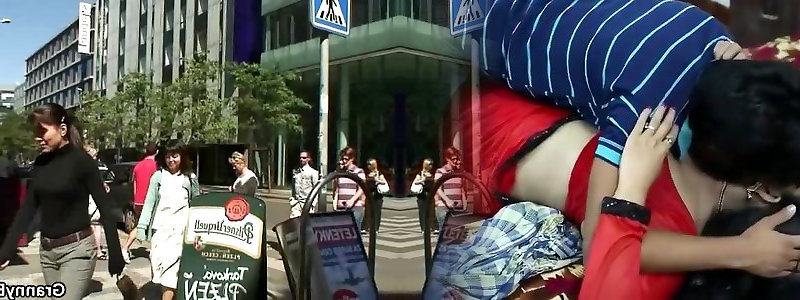 Big-titted older grandma picked up by youthful dude
