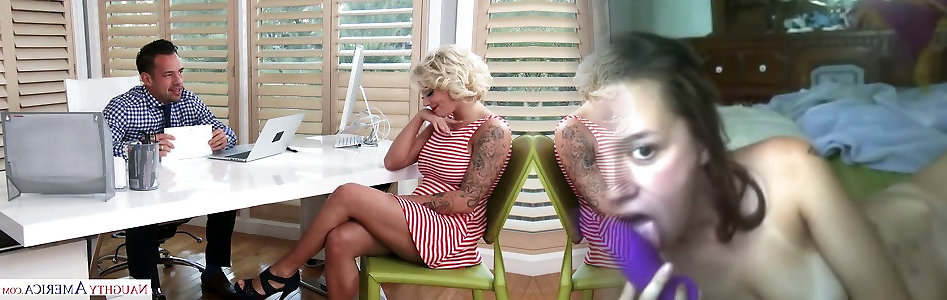 Curly haired thick titted and tatted ash-blonde seduces man for mish fuck-fest
