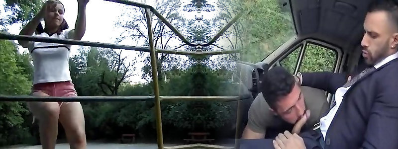 Brief haired granny shamelessly gives a suck off outdoors and boinks well