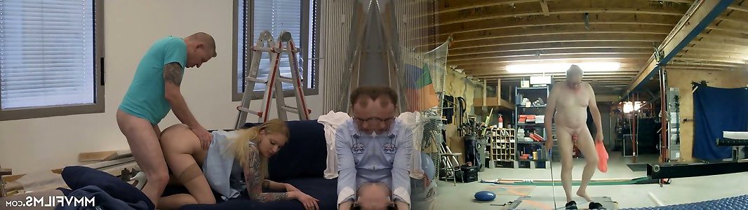 Youthful platinum-blonde Kitten Blair is plumbed by 2 elderly and wild men