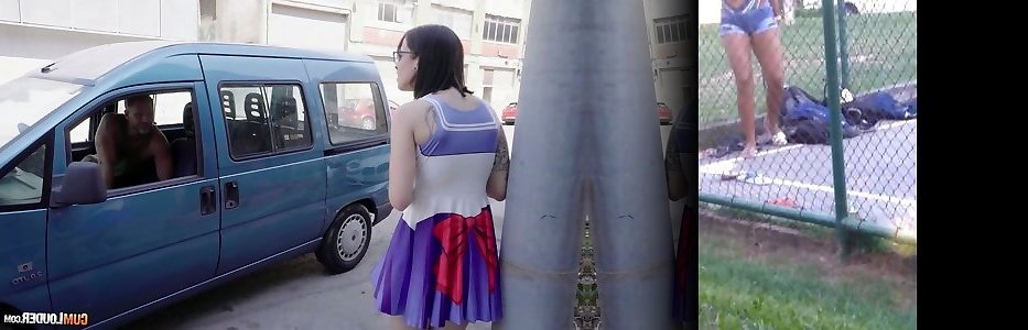Tattooed picked up nymph Lilyan gives a blow-job in the car and gets her cooch ravaged indoor