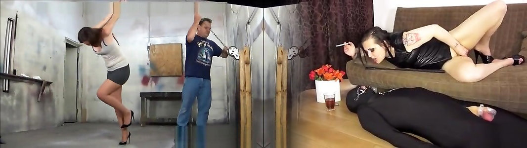 Red spanks the hell out of her new slaves booty