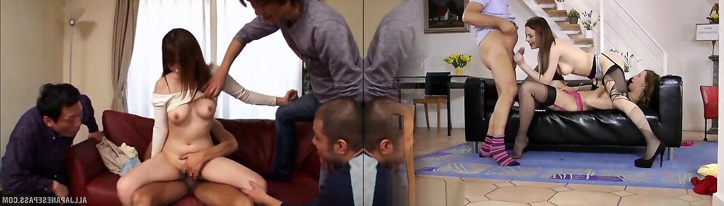Four Japanese studs gang-fuck Yui and make her jizz with their pricks