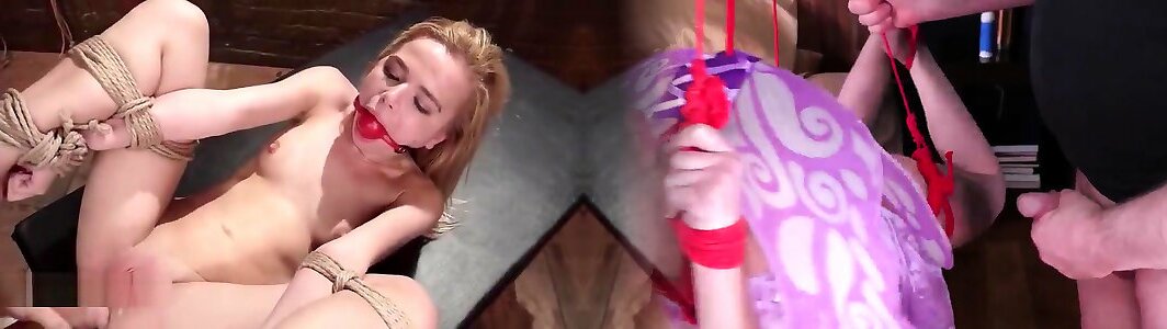 Slender light-haired roped up in straps smashed