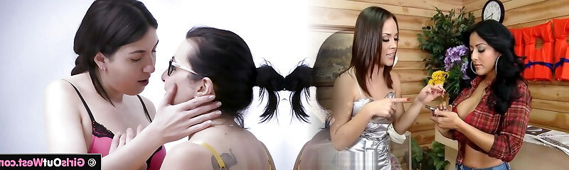 Black and white lesbians joined by stubby dicked nerd