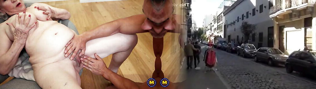 Older hairy grandmother meets strong young boy