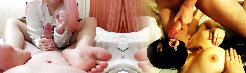 Flexible sweetheart jerks off with her feet and sucks in parallel