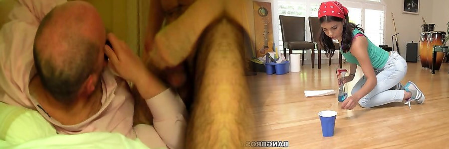 Old granddad munches pleasant hairless teen fuckbox passionately