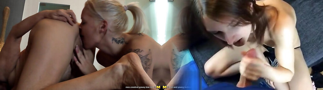 Platinum-blonde teenager stunner is tempted and eaten out by a mature sapphic